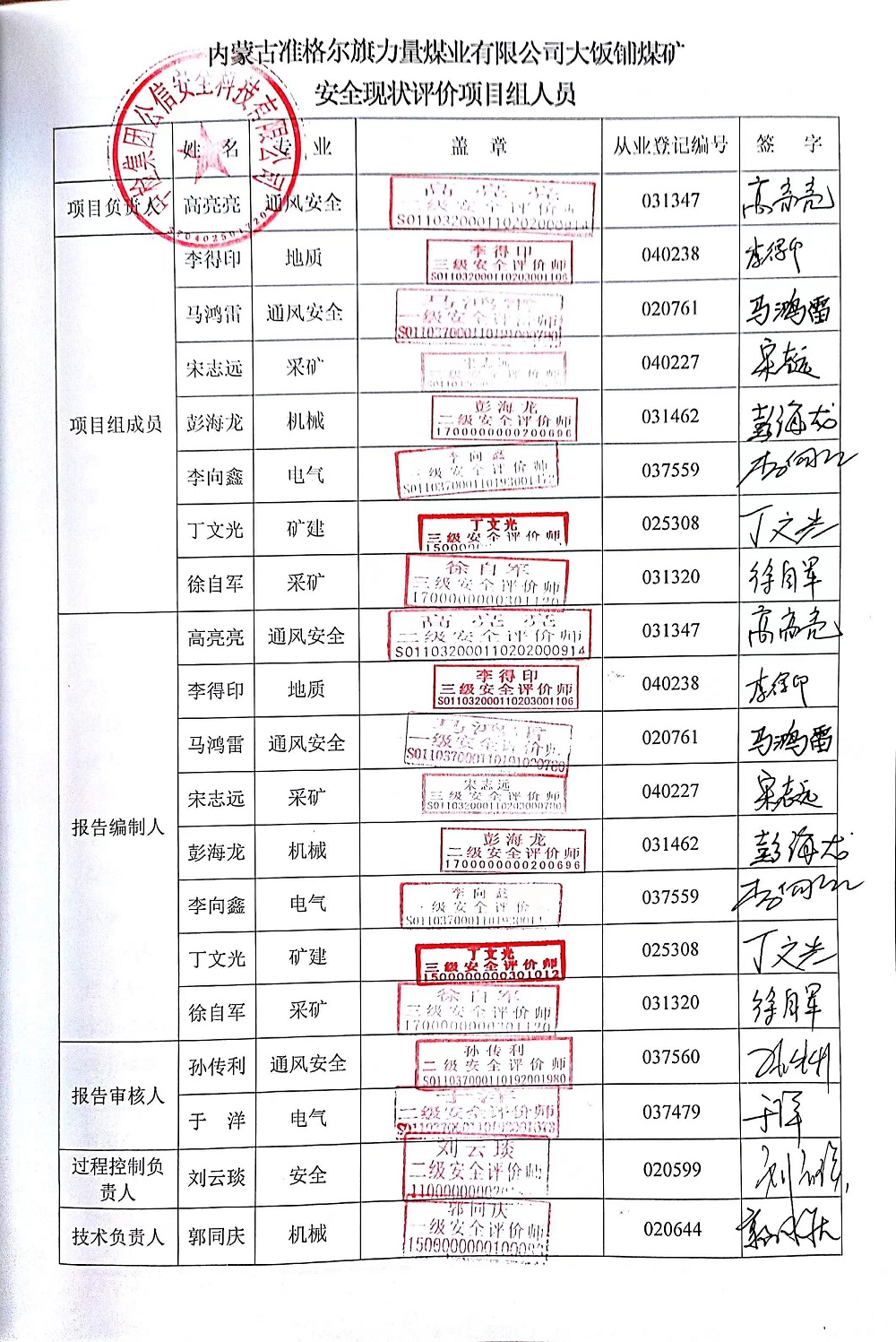 參與安全評價工作的注冊安全工程師: 高亮亮、馬鴻雷、彭海龍、宋志遠(yuǎn)、丁文光、徐自軍 | |||||||