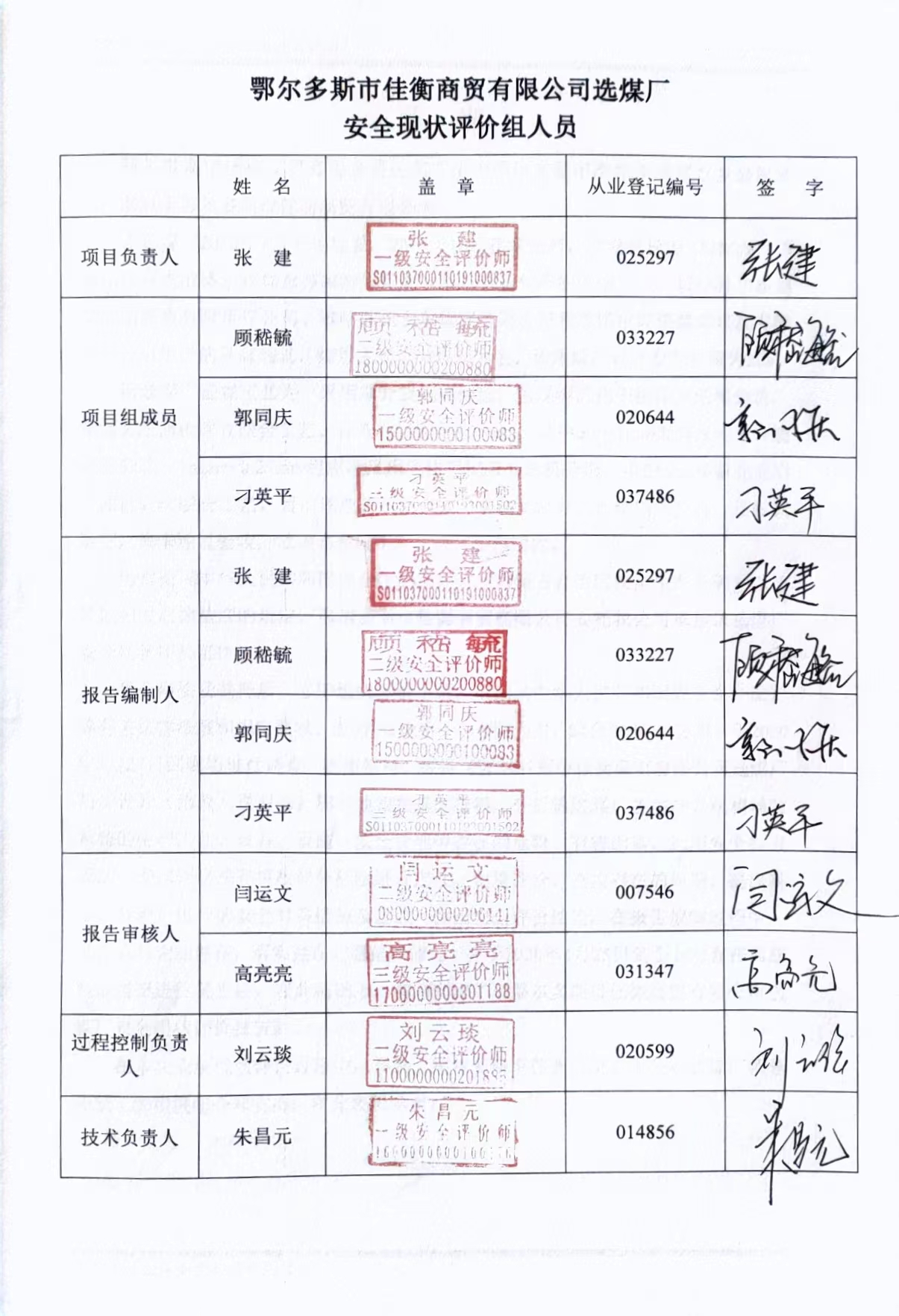 參與安全評價工作的安全評價師: 張建 顧稽毓 郭同慶 刁英平 | |||||||