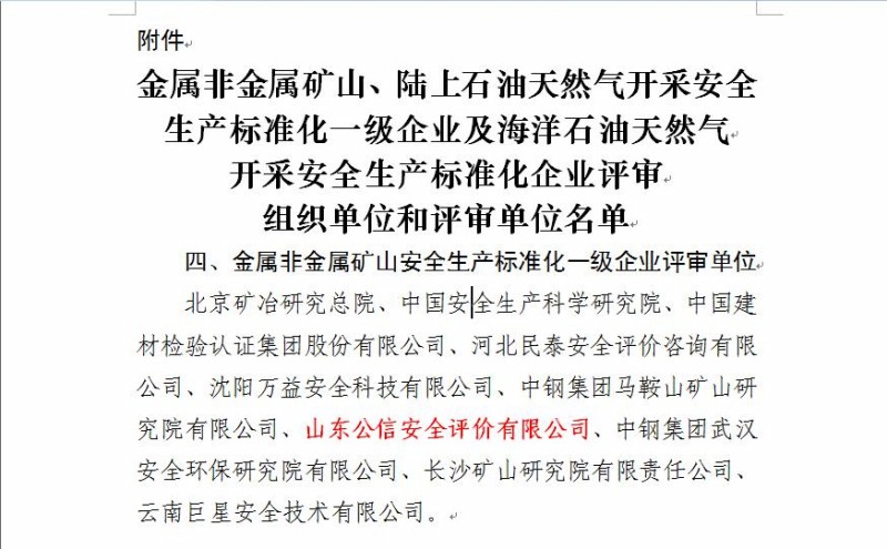 國(guó)家企業(yè)安全生產(chǎn)標(biāo)準(zhǔn)化評(píng)審一級(jí)資質(zhì)范圍(非煤)