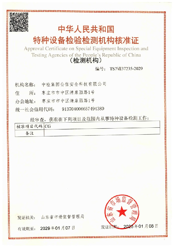 機(jī)構(gòu)名稱:中檢集團(tuán)公信安全科技有限公司證書(shū)編號(hào):TS7VⅡ37235-2029 有效期至:2029年1月7日