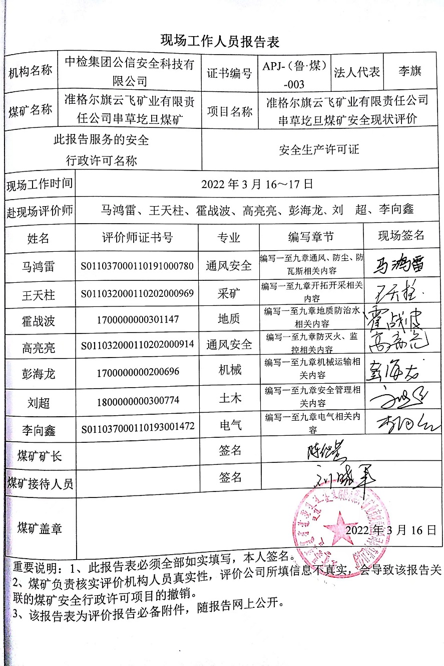 2022年第2季度4準格爾旗云飛礦業(yè)有限責任公司串草圪旦煤礦安全現(xiàn)狀評價