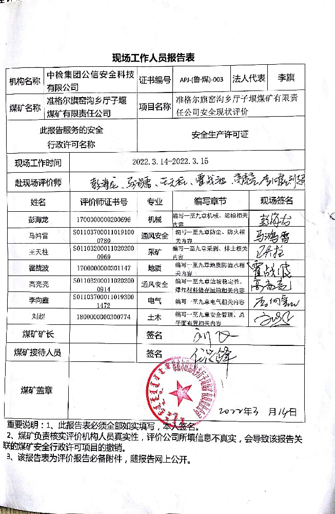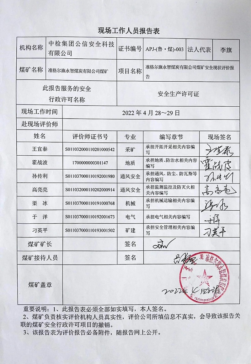 2022年第2季度5準格爾旗永智煤炭有限公司煤礦安全現(xiàn)狀評價報告
