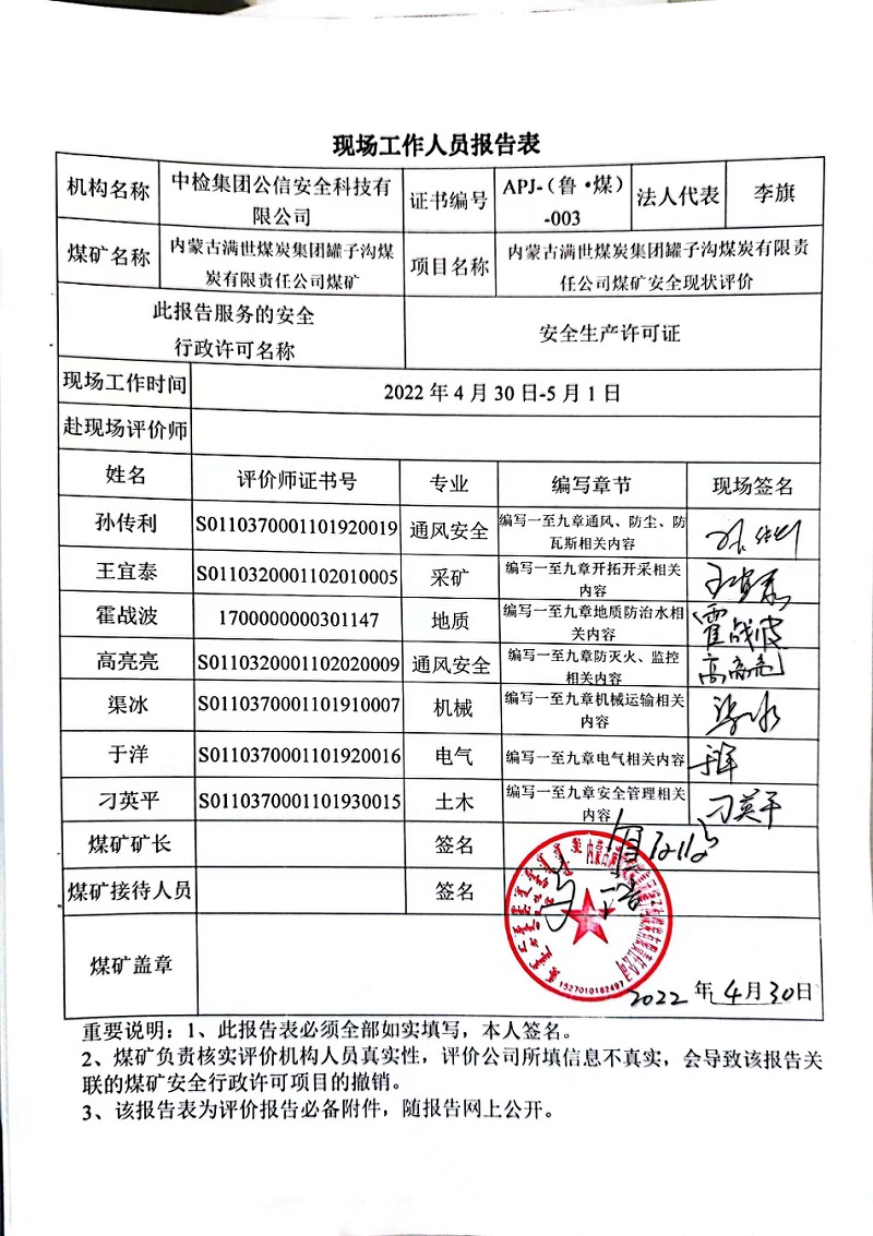 2022年第2季度6內(nèi)蒙古滿世煤炭集團罐子溝煤炭有限責任公司煤礦安全現(xiàn)狀評價報告