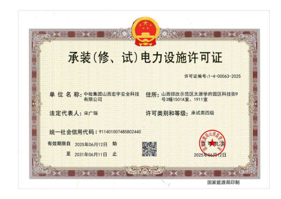中檢集團山西宏宇安全科技有限公司(以下簡稱“宏宇公司”)通過一段時間的項目考察及調(diào)研,憑借在安全生產(chǎn)檢測檢驗領域的深厚積累與卓越實力,首次獲得國家能源局山西監(jiān)管辦公室頒發(fā)的電力承試···