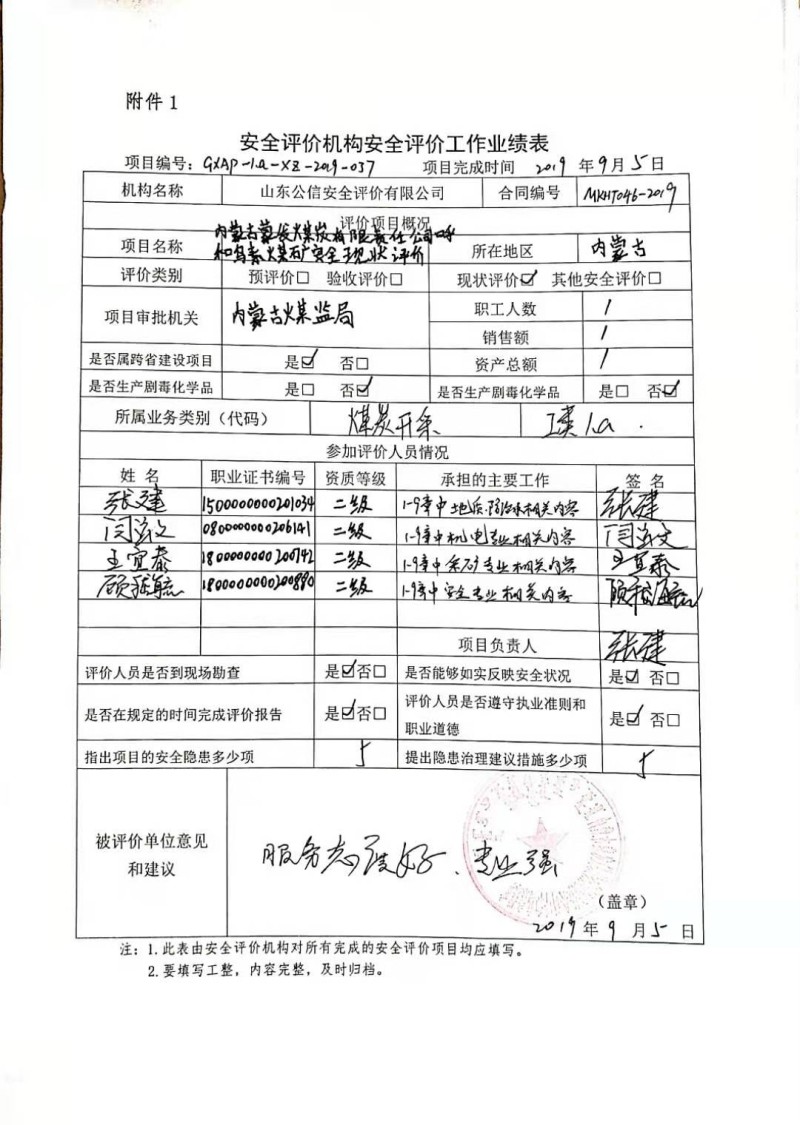 | 參與安全評價工作的安全評價師: 張建 閆云文 王宜泰 顧嵇毓 |