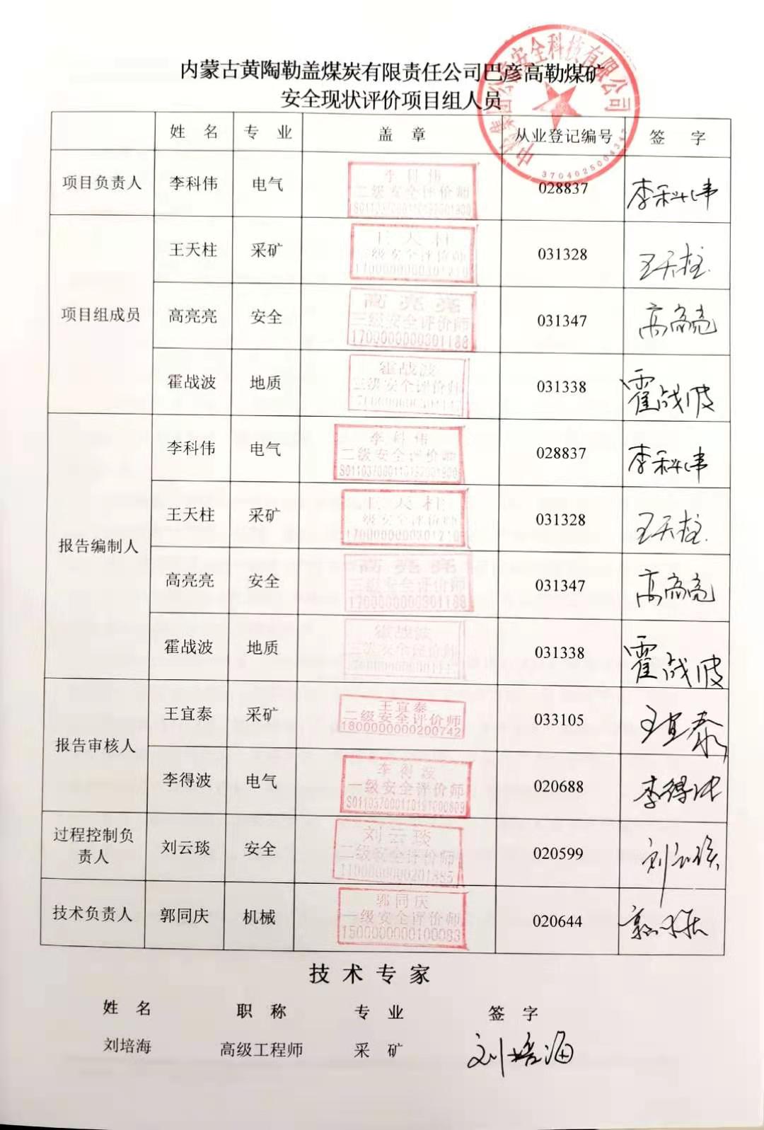 | 參與安全評(píng)價(jià)工作的注冊安全工程師: 王天柱、高亮亮、霍戰(zhàn)波 |