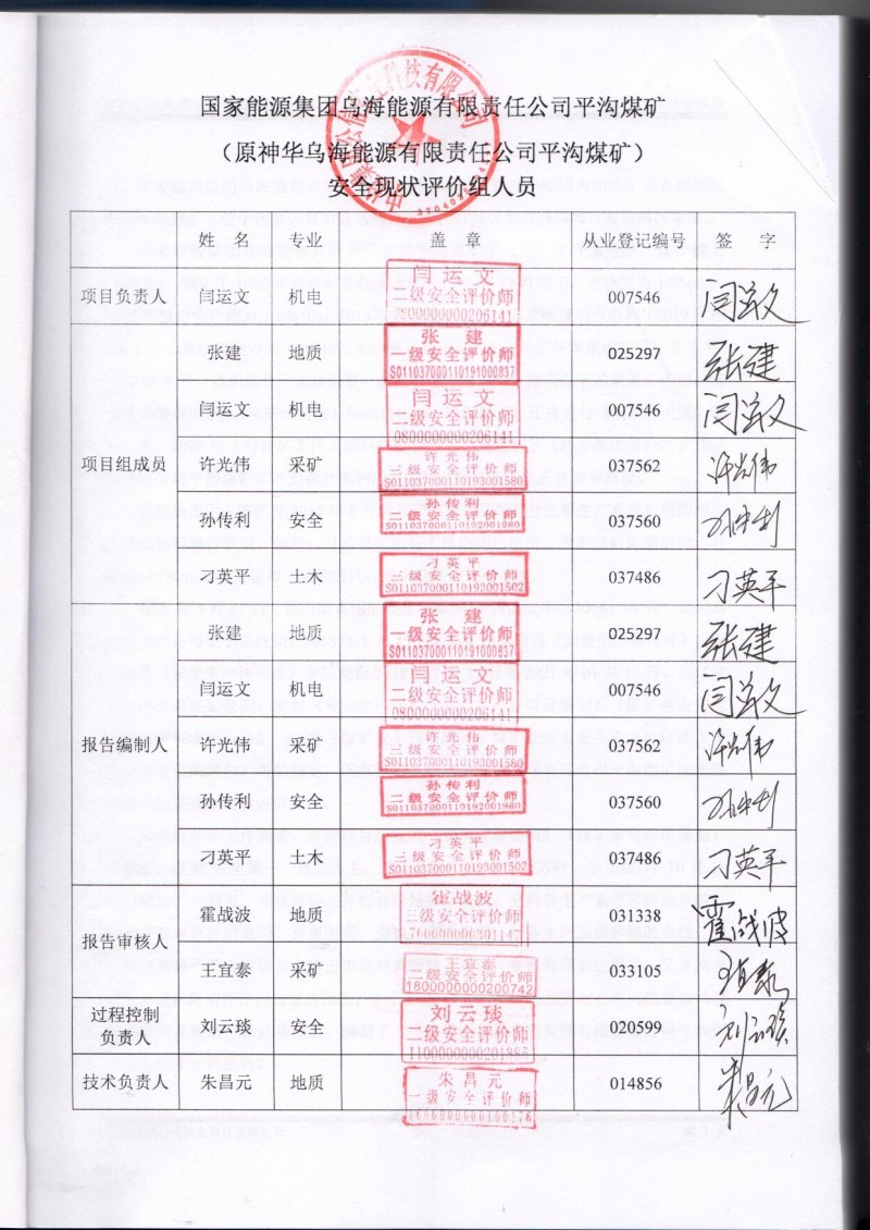 | 評(píng)價(jià)項(xiàng)目名稱(chēng) | 國(guó)家能源集團(tuán)烏海能源有限責(zé)任公司平溝煤礦安全現(xiàn)狀評(píng)價(jià)報(bào)告 | ||||||