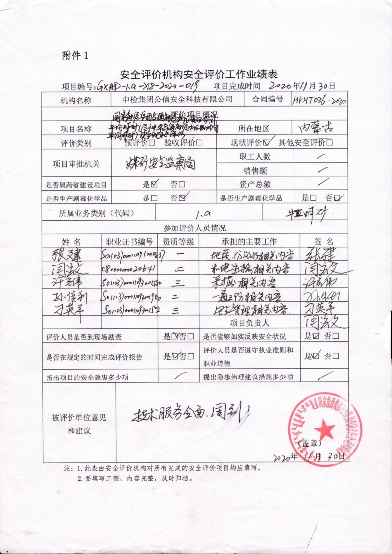 | 評(píng)價(jià)報(bào)告提交時(shí)間 | 2020年11月 | ||||||