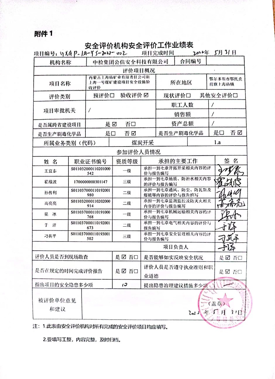 | 評(píng)價(jià)項(xiàng)目名稱 | 內(nèi)蒙古上海廟礦業(yè)有限責(zé)任公司新上海一號(hào)煤礦建設(shè)項(xiàng)目安全驗(yàn)收評(píng)價(jià)報(bào)告 | ||||||
